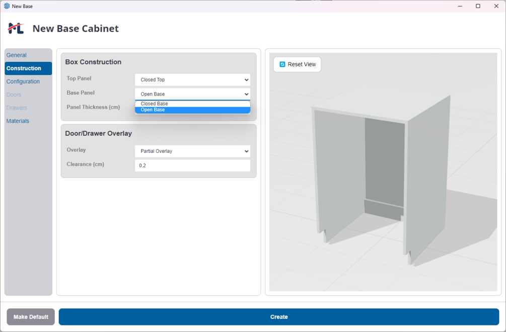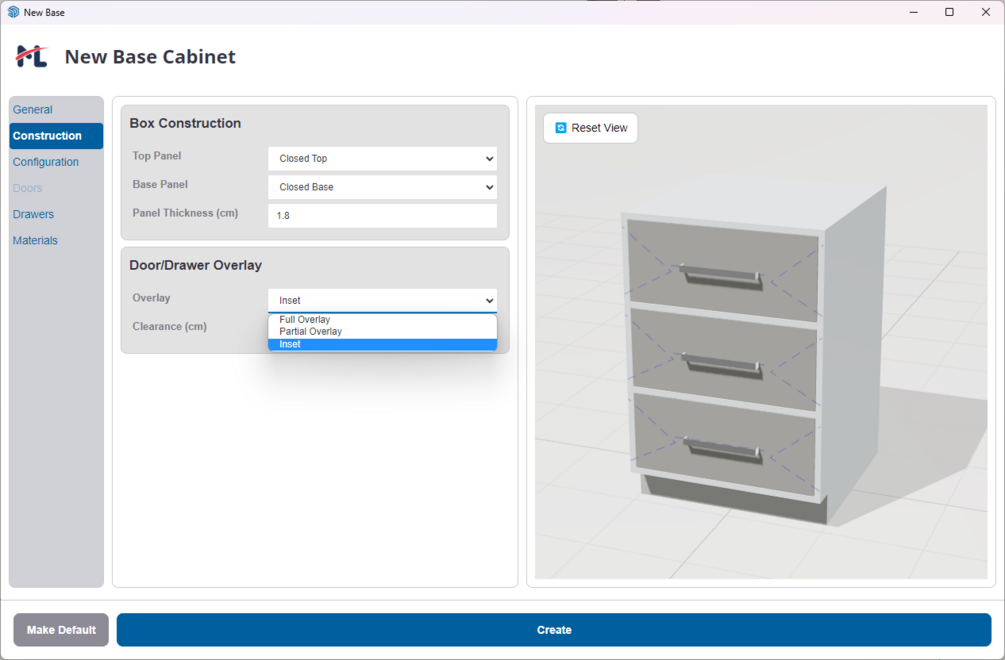 - Set top/bottom panel logic, panel thickness, overlay type, and clearances