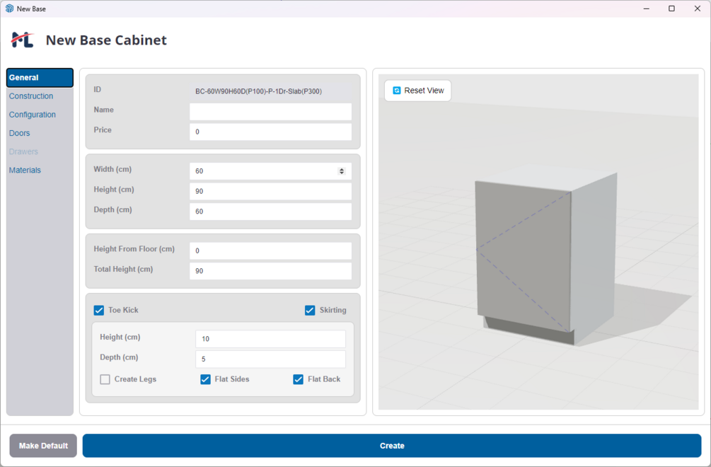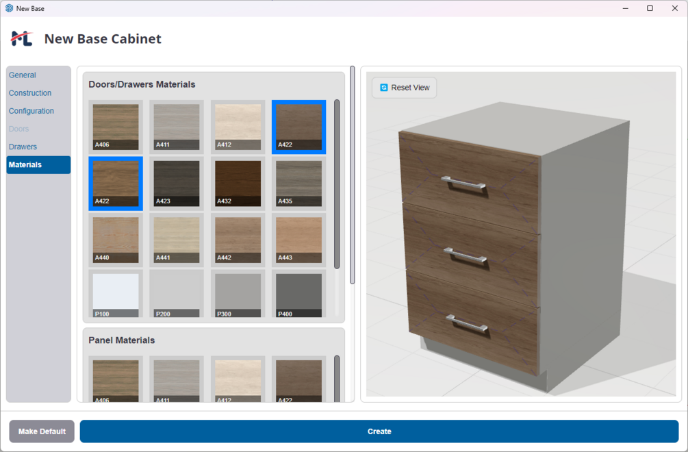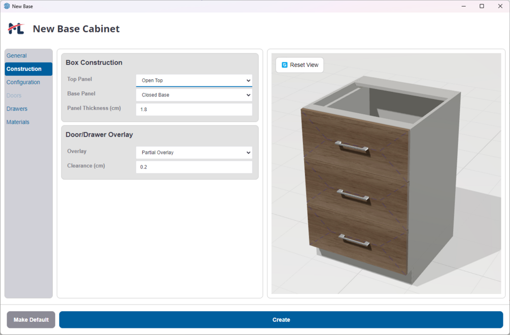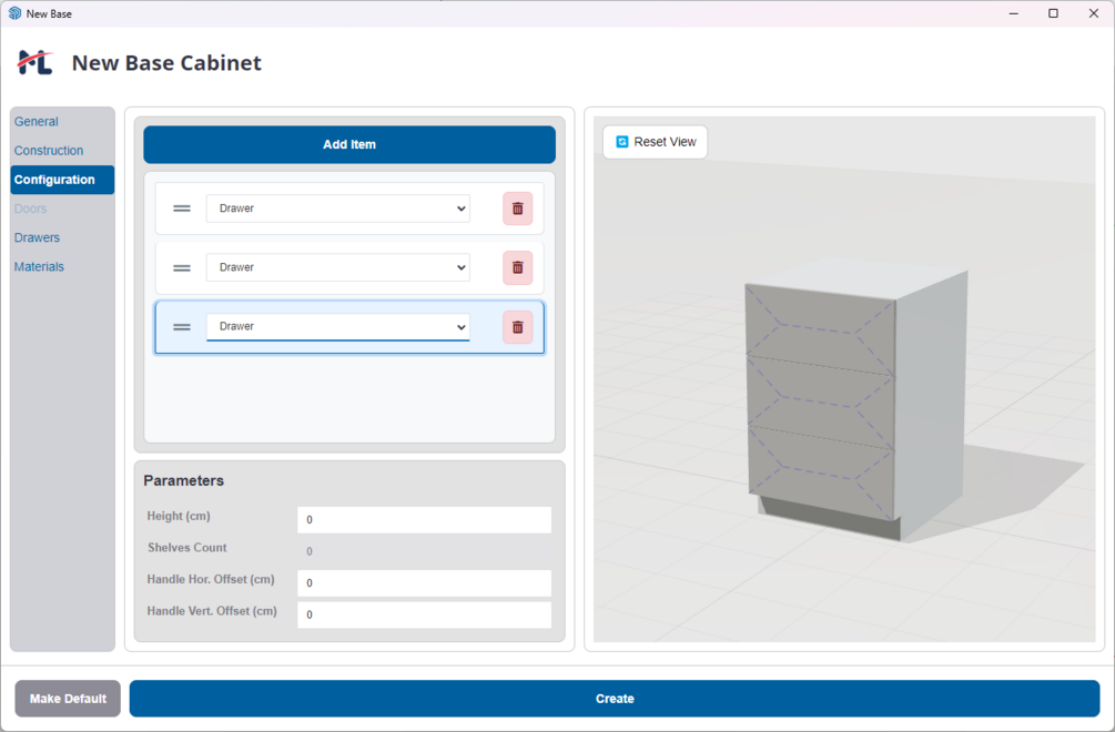 - Dynamic control of drawers, doors, heights, handle placement, and more